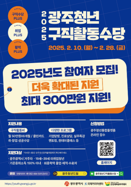마지막으로, 2025 광주 청년 구직활동수당은 개인의 적극적인 활용 의지에 따라 성과가 달라진다고 느꼈습니다. 단순히 수당을 받는 데 그치지 않고, 다양한 지원 프로그램에 성실히 참여해보세요. 여러분이 가진 역량을 한층 발전시킬 기회가 되고, 광주 안에서 더 큰 가능성을 발견할 수 있을 거라 믿습니다. 저처럼 간절히 취업을 준비하고 있는 청년이라면, 이 기회를 반드시 놓치지 않길 바랍니다.